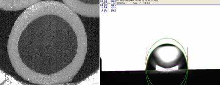 “膜法提溴用高性能疏水膜的研制与应用”项目是由膜技术研究室承担的2007年所基本科研业务费团体项目,该项目自启动以来,研究工作按照项目任务书要求逐步落实,提溴用疏水膜的研发工作取得阶段性成果。提溴用疏水PVDF中空纤维膜断面结构和接触角如下图所示,可以看出膜断面多为海绵状孔结构,接触角为90.5°,具备较强的疏水性能。膜性能测试结果表明,膜N2气通量最高可达到8.62 m3·m-2·h-1·0.01MPa,断裂强度最高可达到6.06MPa,实现提溴效率>83%,上述性能参数均达到项目任务书中指标要求,可用于膜法提溴技术的应用,但应用过程中膜材料性能稳定性还有待进一步考察。该项目的实验研究工作已基本完成,现进入结题阶段。
