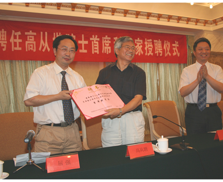 2006年7月8日,海水淡化研究所隆重举行首席科学家聘任仪式,聘请高从堦院士为国家海洋局天津海水淡化与综合利用研究所首席科学家。国家海洋局党组成员、副局长王宏、局人事司、科技司、局系统兄弟单位领导及丁德文、袁业立、潘德炉院士应邀出席授聘仪式。淡化所党委书记高丰舟主持仪式,屈强所长代表淡化所讲话并向高从堦院士颁发聘书。