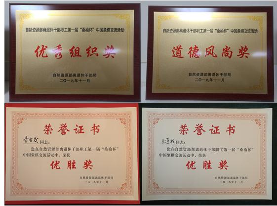我所离退休职工象棋代表队李金发、王连柱11月20日至21日在北京参加了由自然资源部离退休干部局举办的自然资源部离退休干部职工第一届“桑榆杯”中国象棋交流活动。李金发和王连柱均获优胜奖,我所获得“优秀组织奖”和“道德风尚奖”。