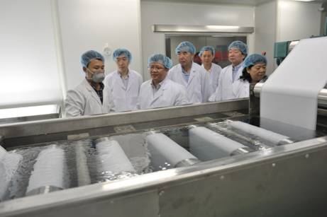 陈其针处长一行参观了淡化所科技成果展室、国家海水及苦咸水利用产品质量监督检验中心以及海水淡化、海水循环冷却等实验室,还重点考察了平板膜制备实验室,听取了淡化所对实验室配置和承担项目的介绍。