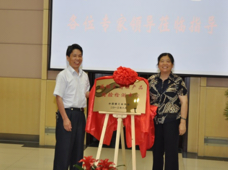 在全场热烈的掌声中,尤金德秘书长和李琳梅所长共同为液体分离膜产品检验检测中心成立揭牌。