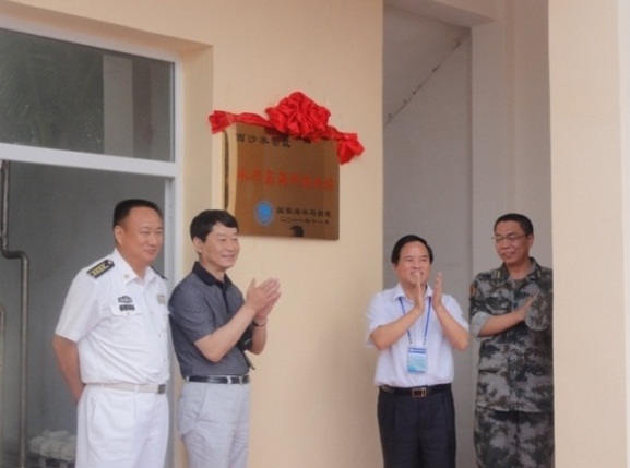 11月15日,国家海洋局向西沙水警区赠送海水淡化装置揭牌仪式在永兴岛隆重举行。国家海洋局党组书记、局长刘赐贵在率考察组赴西沙永兴岛、琛航岛慰问驻岛军民和中国海监执法人员期间专程参加了揭牌仪式,出席揭牌仪式的还有国家发展和改革委员会党组成员、副主任穆虹,国家边海防委员会副局长马庆雷,国家海洋局党组成员、人事司司长李春先,国家海洋局海监总队党委书记、常务副总队长孙书贤,海军司令部作战部朱建良副部长和西沙水警区陈昌峰司令员等30余名领导,屈强所长陪同。