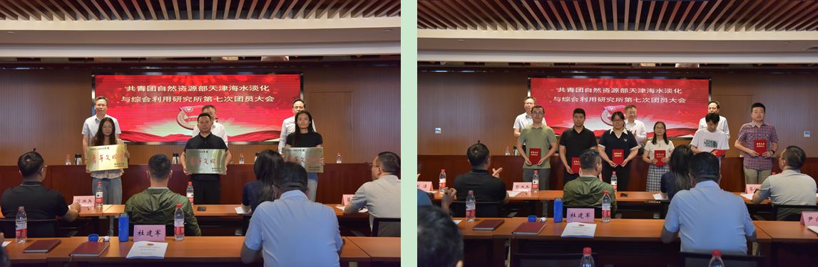 海水淡化所纪委书记刘新春宣读了部直属机关团委同意召开共青团自然资源部天津海水淡化与综合利用研究所第七次团员大会的批复。部直属机关团委书记邹艳艳以视频形式向大会致辞。海洋技术中心团委书记彭洪兵作为兄弟单位团委代表致贺词。